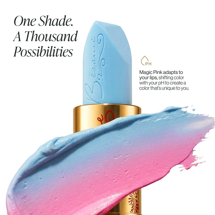 A beloved fan-favorite, our Magic Pink - 1959 takes inspiration from the iconic dress-changing scene in the 1959 animated feature. Formerly known as “Make It Blue, Make It Pink,” this whimsical shade brings the magic of this classic fairytale to your daily beauty ritual. Though Magic Pink - 1959 appears blue in our gorgeous pink & gold metal tube, it shifts when applied based on your personal pH to create your own signature shade ranging from light rose pink to darker magenta. The perfect hue for anyone who could use a little more magic in their daily routine.